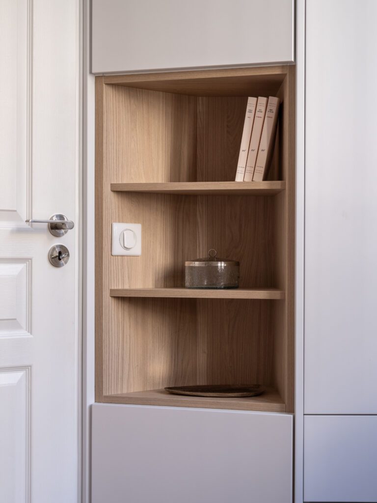 Le brief des clients révèle un besoin important en rangement. Nous nous sommes attachés à penser chaque pièce avec l'idée de maximiser le rangement tout en conservant l'ergonomie et l'esthétique de l'espace.